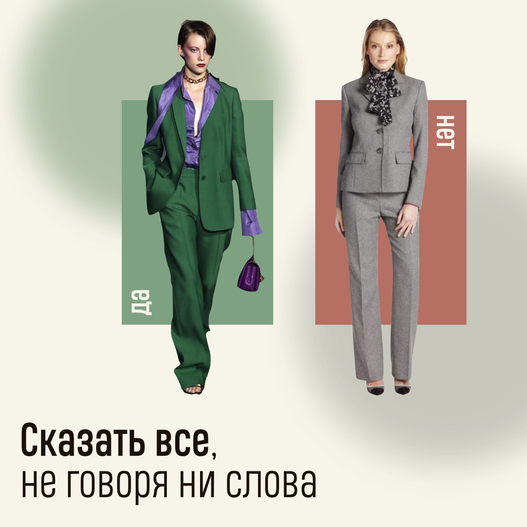 Не выходя за рамки дресс-кода: костюм, однотонный.