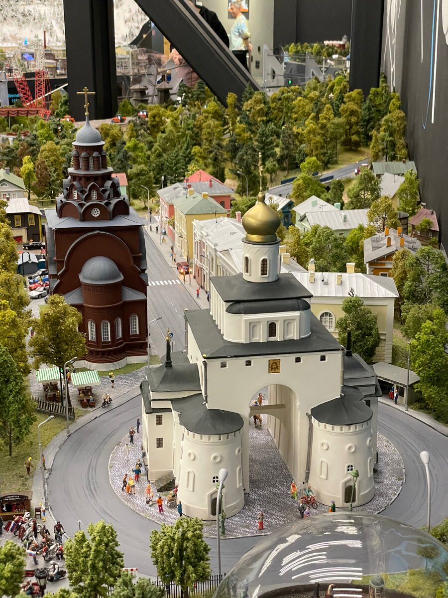 Владимир быстро узнается благодаря своим воротам, вокруг которого сами катаются автомобили макета.