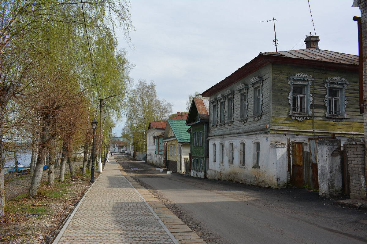 Среди малых городов (с населением до 50 тысяч человек) эта крошка находится в первой десятке - здесь не наберется и двух тысяч жителей. При этом город занимает первое место по количеству туристов на одного местного человека. И, хотя туристы - мероприятие выгодное, но приходится ограничивать их буйный машинопоток - с мая по октябрь "чужих" пускают сюда только если есть забронированное в городе жильё. Итак, речь сегодня идёт о городе Плёс Маленькие улочки, маленькие домики с редкими вкраплениями более солидных - здесь и впрямь некуда приткнуть лишнюю машину, не испортив почти что пасторальные виды. Вместо овец, правда, увековеченная кошка. Прототипом её является вполне себе реальная кошка Муха, питомица плёсского художника Виталия Панченко. Муха погибла в неравной схватке с собакой, и друг Виталия, белорусский скульптор Олег Илларионов, запечатлел кошку так: К Мухе мы пробирались уже пешком, оставив машину на окраине города. Мы не знали об ограничениях в движении (к тому же, был тольк