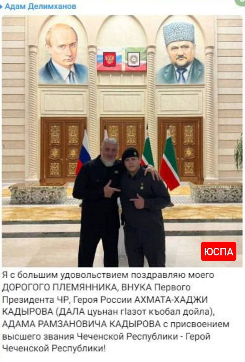 О присвоении сообщил дядя Адама - депутат в российской Думе от Чечни Адам Делимханов.