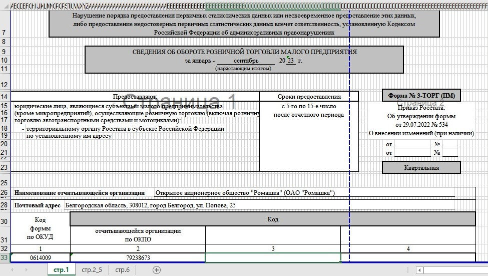 Как заполнить первый раздел отчета 3 -ТОРГ (ПМ) в 2023 году