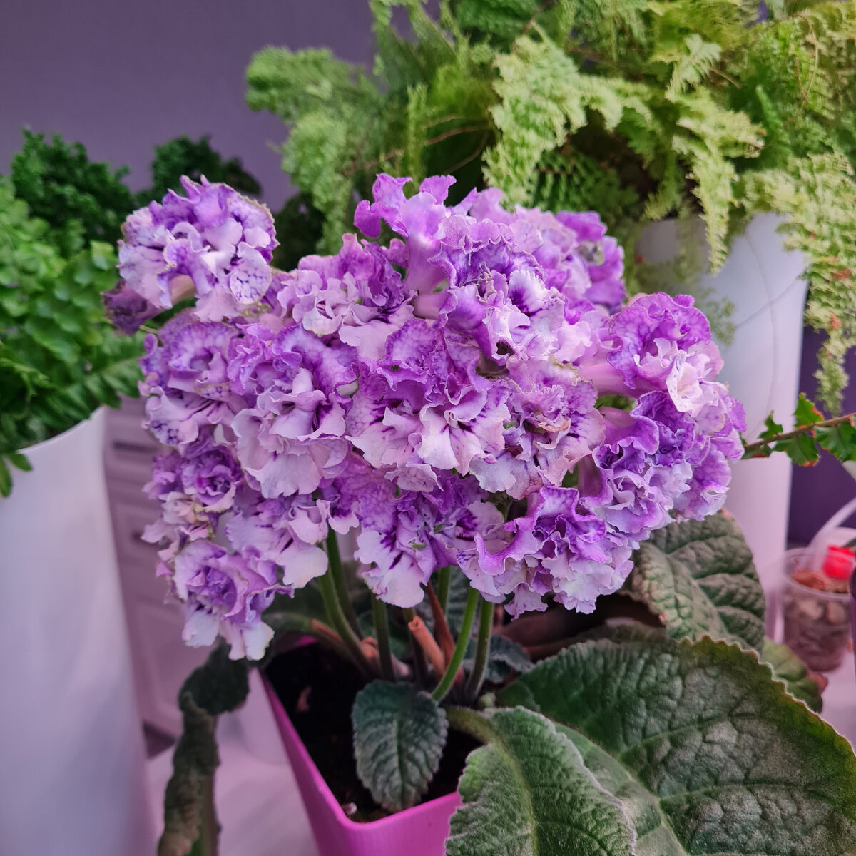 Стрептокарпус LM- Дед Мороз Сорт 2022 года. Совершенно удивительный новый сорт из серии Новый год ( Снегурочка, Дед Мороз, Снежинка, Метелица). Крупногабаритный сорт, конечный вариант кашпо можно выбирать 15 см в диаметре и 2 литра в объёме. Самые удивительные свойства этого сорта это невероятное цветение. Цветёт он непрерывно уже 1,5 года. Начал цвести в июне 2022 года двумя красивыми крупными махровыми цветками. К декабрю 2022 года достиг аккуратной пышненькой шапочки из нескольких бутонов. К июню 2023 года достиг невероятных размеров. Розетка стала просто огромной с жирными, сочными, длинными листьями, которые порой так и хотелось нашинковать в салат🤪 Сегодня уже октябрь 2023 года, а он всё цветёт и не известно когда отправится на отдых. И цветёт не отдельными цветками, а необыкновенной пышной шапкой. Кстати, на данных фото в кашпо посажена одна розетка. Второе достоинство этого сорта это невероятная выживаемость. Этим летом ему не повезло, был он залит водой щедрой рукой хозяй