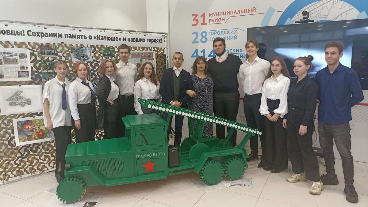 Весьма кстати пришелся и макет легендарного Гвардейского реактивного миномета «Катюша», выполненный студентами Воронежского техникума пищевой и перерабатывающей промышленности. Ребята занимаются в историческом кружке под руководством Екатерины Тулиновой.