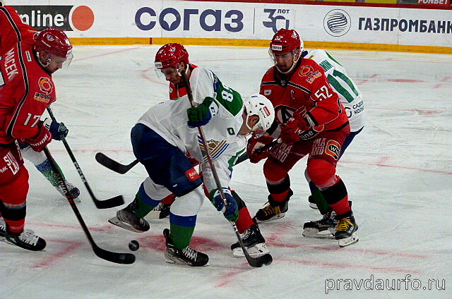 Хоккеисты «Автомобилиста» завершили выездную серию в чемпионате КХЛ матчем с «Салаватом Юлаевым» в Уфе. Увезти очки из столицы Башкортостана екатеринбуржцы не смогли. В текущем чемпионате Континентальной хоккейной лиги команды встречались уже в третий раз, и в двух предыдущих верх брал «Автомобилист», в том числе и на чужой площадке. Новое же противостояние сразу пошло не по сценарию гостей. Уфимцы с первых минут пошли в атаку и вскоре открыли счет. Артем Пименов получил передачу от Данила Башкирова, вышел на позицию для броска и поразил угол ворот Евгения Аликина. А на 6-й минуте «зеленые» упрочили свое преимущество. Башкиров вновь выступил в роли ассистента, а завершил атаку Динар Хафизуллин. И тут же «Автомобилист» едва не получил третью шайбу. Аликин дважды выручил после бросков новичка хозяев Джоша Ливо и того же Хафизуллина. И в дальнейшем «Салават» владел инициативой, регулярно обстреливая ворота гостей. Екатеринбуржцы только ближе к перерыву пришли в себя и стали периодически б