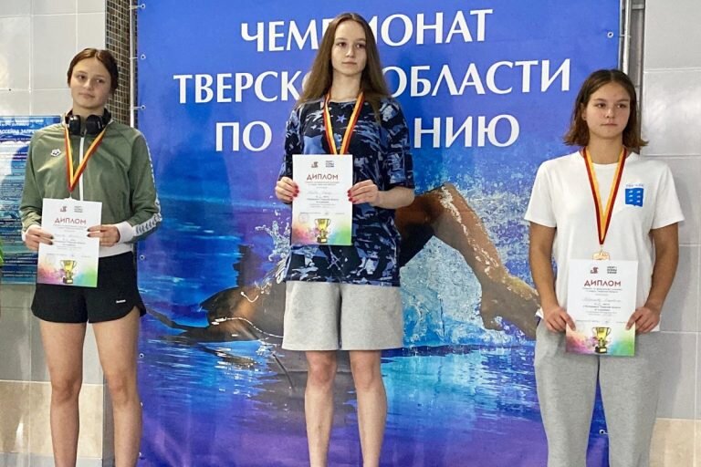 Лучшие региональные достижения на водных дорожках обновили Ульяна Линда из Твери и Илья Захариков и Анна Муравьева из Конакова. В Торжке прошел чемпионат Тверской области по плаванию среди мужчин и женщин. Соревнования собрали в бассейне ВФОК «Дельфин» 140 пловцов из восьми муниципалитетов. В трехдневной программе на 25-метровых водных дорожках определились обладатели 30 комплектов медалей на разных дистанциях. В рамках чемпионата 2023 установлено четыре новых региональных рекорда. Сразу на 1,12 секунды улучшила прежнее достижение на дистанции 50 метров баттерфляем 18-летняя студентка факультета физической культуры ТвГУ Ульяна Линда (на снимке в центре). Воспитанница тренера Александра Ситаева из КСШОР № 1 финишировала за 27,94 секунды. Два рекорда обновил 17-летний Илья Захариков из Конакова. На 100 метрах вольным стилем победитель и призер первенств страны превзошел свое же прошлогоднее достижение на 0,09 секунды (49,85). На дистанции 50 метров баттерфляем Илья на 0,23 секунды проплы