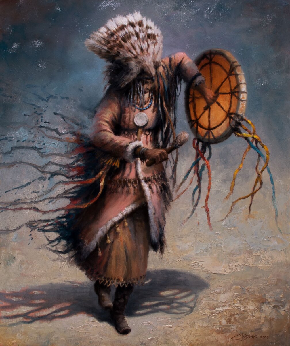 Каждый из нас хоть раз в жизни видел шамана, как минимум на картинке или фотографии, а может быть слышал или читал рассказы, видел в кино. У шамана много разной атрибутики, которая помогает ему в работе. В ходе обучения и работы я тоже обросла многими рабочими инструментами и атрибутами. Давайте попробуем в этой статье разобраться: что, о чем и для чего? Бубен и колотушка Главный инструмент, верный конь — своеобразное разрешение на право камлания. Бубен не является единственным способом общения с духами, есть ещё погремушки и многое другое. Но именно он является основным инструментом. Северные алтайские шаманы могли не иметь ритуального костюма, но бубен был главным инструментом обряда. Конструкция бубна проста: обечайка (обод) овальной или круглой формы, внутри которой две перекладины. Одна из них вертикальная (служит рукоятью), а другая горизонтальная. Еще бубен представляли в виде лодки, а колотушку — в виде весла. Такие образы говорят о том, что камлание — это своеобразный спос
