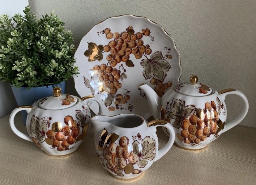 Ломоносовский фарфоровый завод, чайный сервиз «Золотой виноград» 1980е г., СССР. Осенняя роскошь✨✨✨