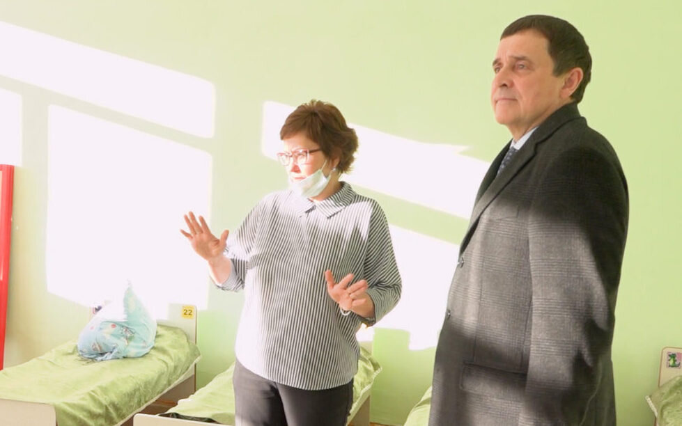Михаил Конев осматривает новые окна в Центре развития ребенка