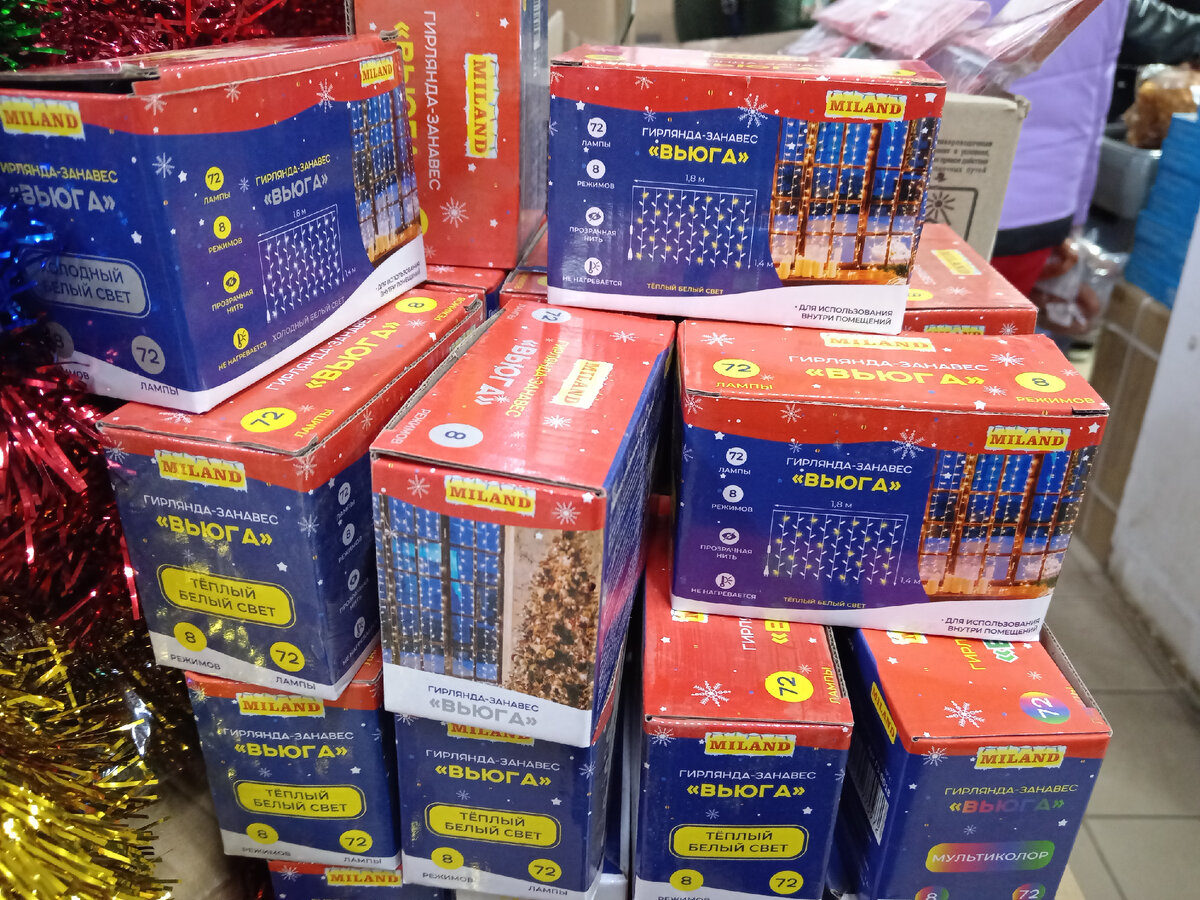 Добрый день всем подписчикам и гостям моего канала! Приглашаю всех вас в магазин "Светофор", познакомиться с ассортиментом зимних, новогодних товаров. Можно заранее присмотреться к Новогодним товарам. Гирлянда - занавес "Вьюга" 1,8*1,4 м., теплый белый цвет, 72 лампы, 8 режимов. Цена: 242,20. Уличная гирлянда "Бахрома" 4*0,7 м, 72 лампы, можно соединять между собой несколько гирлянд. Цена: 354,50. Гирлянда - звёзды "Калейдоскоп", 2,5*0,7м, 82 лампы. Цена: 416,50. Мишура 2 метра. Цена: 30,40. Набор ёлочных шаров (6 см) 12 штук, в комплекте есть бусы (2 м) , либо звезда. Цена: 298,40. Новогодний набор для творчества "Ёлка", в наборе есть наклейки декоративные - 32 штуки. Цена: 81,90. Скоро выпадет снег, пора выбирать лопату. Лопата снеговая "Мастер" с черенком 1200 см. Цена: 284,90. Размораживатель замков и стёкол "Антилёд" пригодится в сильные морозы, 650 мл. Цена: 169,70. Масло моторное полусинтетическое "Unix", 4 литра. Цена: 529,30. Жилетка утеплённая на синтепоне, размер 46