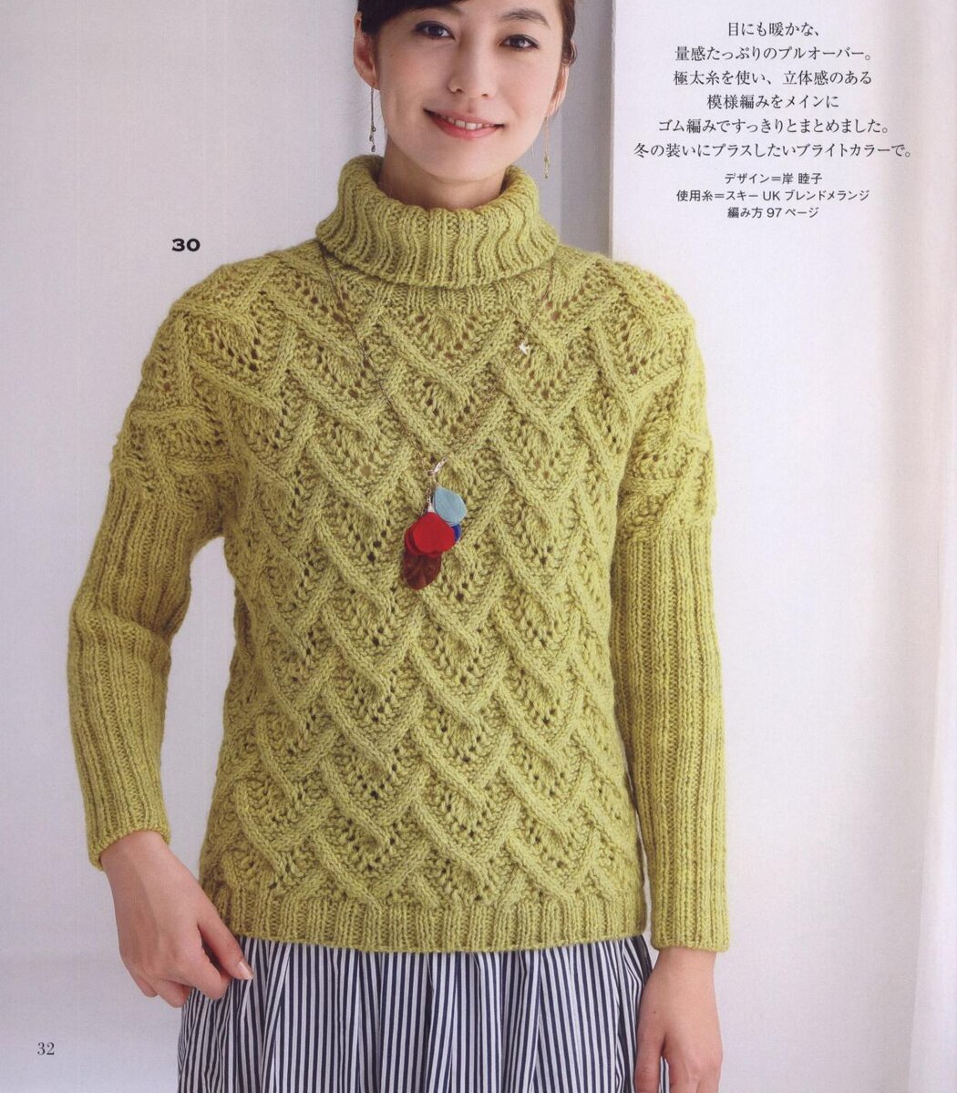 Тёплый, уютный свитер связанный спицами с красивым узором кос будет любимой вещью в гардеробе в холодное время года. В чём преимущество свитера – высокая горловина и свобода по фигуре, такая кофта не сковывает движений. Главная изюминка этого свитера – красивый узор, который включает в себя оригинальные косы и ажур, смотрится объёмно и в тоже время легко. Чтобы связать свитер по фигуре внимательно изучите выкройку и подгоните её по своим меркам. Обратите внимание, что при вязании свитера выполняется спущенное плечо и скос. Схема узора дана для вязания узора по прямой и для вывязывания отдельных участков – как делать прибавки для расширения к пройме и для скоса плеча.