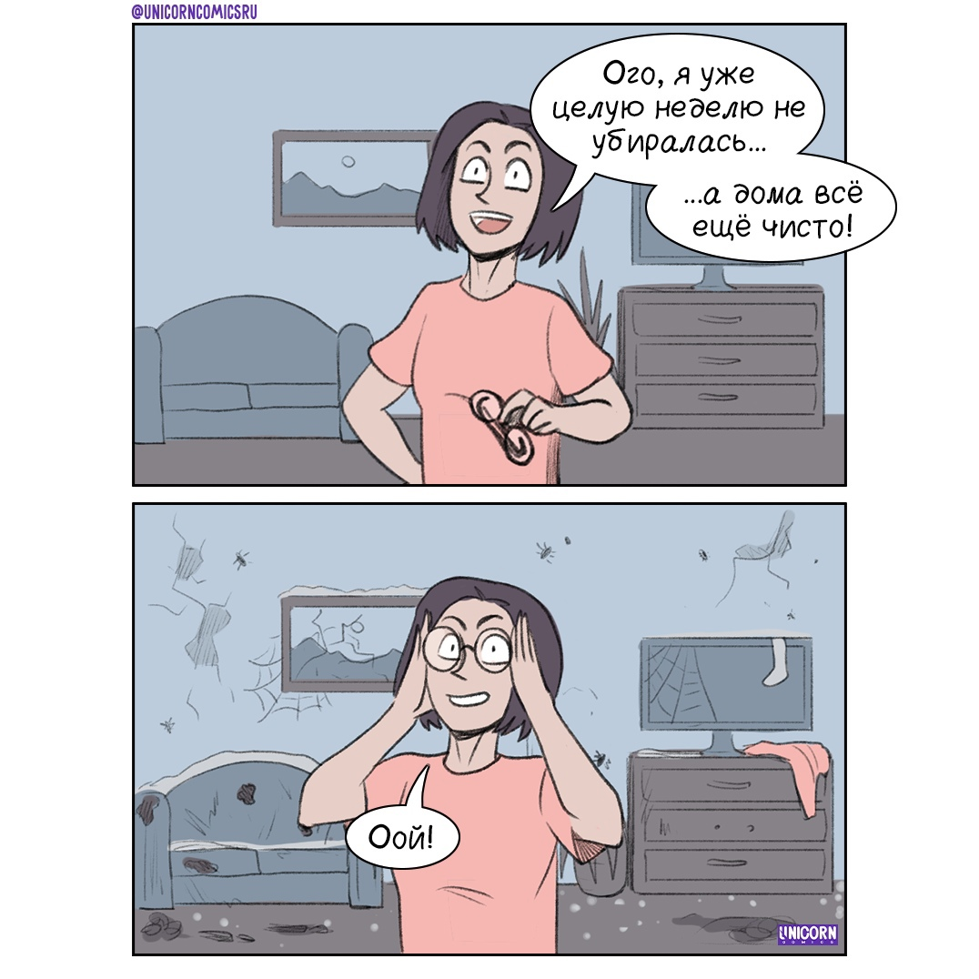 Вы наверняка не раз сталкивались с борьбой с ленью, неловкими моментами, непонятными счетами — той самой бытовой рутиной, от которой порой очень устаешь. В такие минуты здорово открыть хорошие комиксы и понять, что мы не одиноки в борьбе с бытовухой, а значит работа художников проделана не зря!