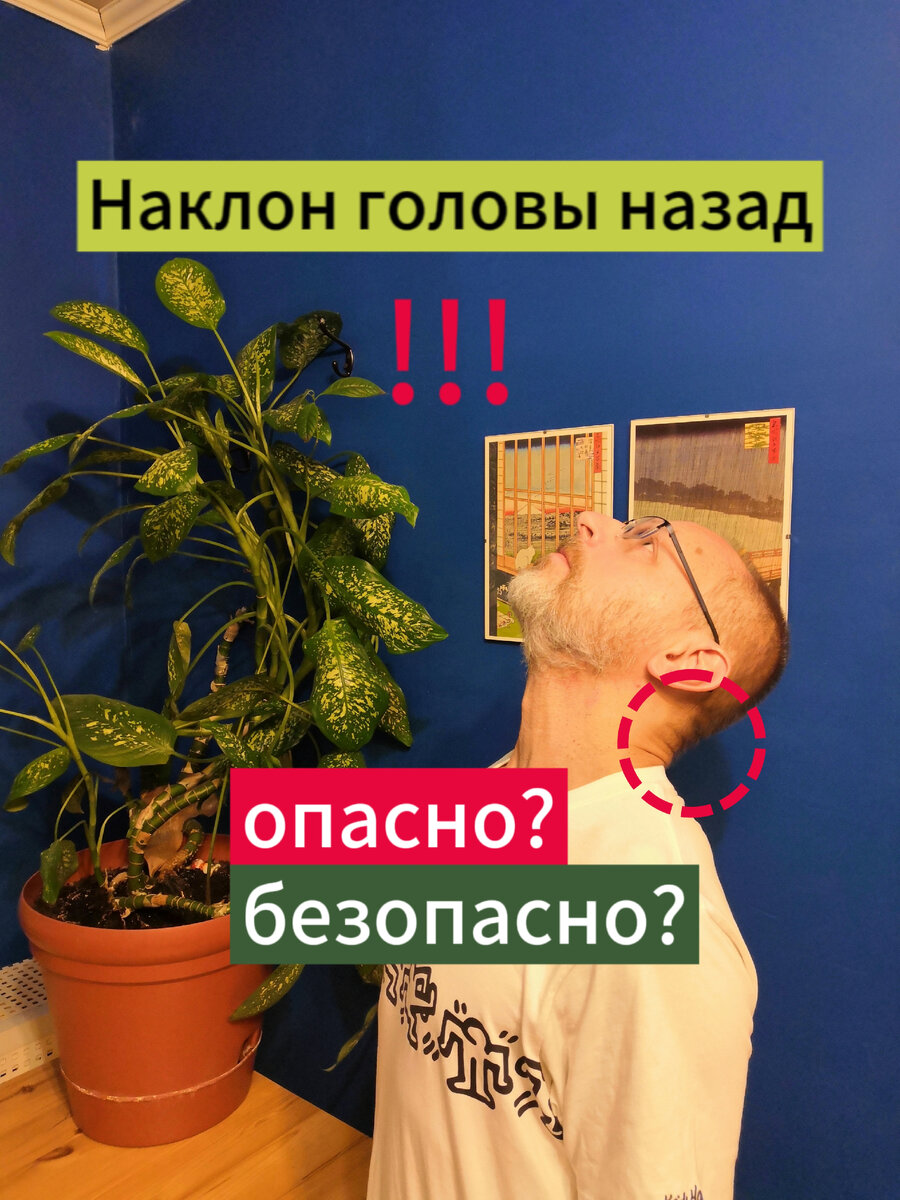 Запрокидывание головы назад может быть вредным по нескольким причинам. Неестественное напряжение шейных мышц. Когда голова заметно запрокинута назад, это приводит к перенапряжению шейных мышц, которые должны удерживать голову в неестественном положении. Так сложилось в процессе эволюции, что мышцы шеи обеспечивают быстрые повороты головы в разные стороны, но к статической нагрузке эти мышцы не приспособлены. На протяжении продолжительного времени такая нагрузка, причём при наклоне не только назад, но и в любую другую сторону, может вызвать напряжение, боль и дискомфорт. Стремление к компенсации. Когда голова находится в неправильном положении, остальное тело может пытаться компенсировать данное положение для удержания равновесия. Это может привести к неестественному положению позвоночника и дисбалансу мышц. Риск травм шейного отдела позвоночника. Запрокидывание головы назад может значительно увеличить напряжение на шейный отдел позвоночника и повысить риск травмы в случае несчастного