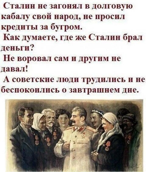 Каждый рассуждает со своей колокольни. А в масштабе всей страны.. Откуда было брать на восстановление разрухи после войны. Мне тетя рассказывала, как трудно было. Она всю войну прошла, в партизанском отряде. После войны одна поднимала двоих дочерей. Но в её присутствии никто слова плохого не мог сказать про Сталина.Без фанатизма были уверены, что без веры в него войну бы не выиграли. Да, жили не богато, но тогда все так жили и министры тоже. А сейчас сравните министров и простых людей, а тогда такого не было. Сколько получают министры? В районе одного двух миллионов в месяц, а простые люди примерно тридцать тысяч, а о пенсионерах вообще молчу. Чего говорить, послевоенное время было трудным.Но ведь за 5 лет подняли страну.Были подняты все ресурсы. Трудно.Голодно.Страшно. Но жили с верой в будущее.А сейчас? День прошел и слава Богу. А про будущее страшно и думать. Что еще народу подкинут? И когда закончится эксперимент на выживаемость? У Сталина не было культа начальника, он был единств