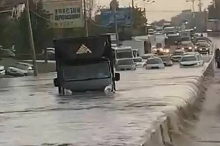 Грузовики с балластом начали устанавливать на улицах Ростова во время ливней