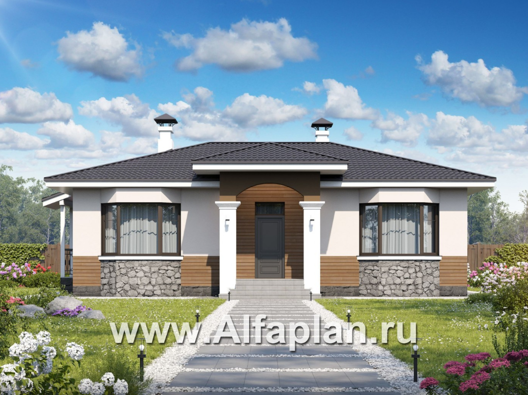 Подробнее о проекте по ссылке тут. Компактный коттедж с симметричной структурой.👇 — В центре плана дома — гостиная, к ней с двух сторон примыкают остальные помещения.