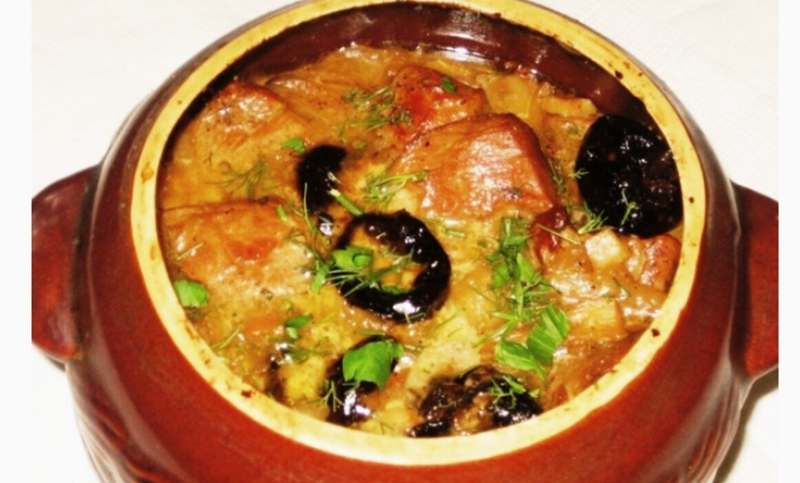 Ингредиенты: Куриное бедро (рекомендуем Петелинка)-2шт., картофель-4шт., помидоры черри-6шт., морковь-1шт., лук-порей-по вкусу., чеснок-2 зубчика., чернослив 10-12шт., бульон-1 чашка., специи-по вкусу (соль, перец, лавровый лист, сухой чеснок). Количество порций-2. Как приготовить: Куриный бульон наливаем по горшочкам. Овощи чистим и некрупно нарезаем-картофель тонкими дольками, морковь и лук тонкими кружочками, помидоры черри на четвертинки., чернослив-пополам. Чеснок раздавим плоской стороной лезвия ножа. В сковороде растапливаем сливочное масло, обжариваем в нем 2-3 минуты морковь. Затем добавляем в сковороду лук порей, обжариваем вместе ещё пару минут. Снимаем с огня. На дно горшочка выкладываем картофель, далее курицу, далее лук с морковью, помидоры и чеснок. Солим и перчим, затем выкладываем чернослив, посыпаем зеленью. На самый верх-ещё пару ломтиков картофеля. Ставим горшочки в холодную духовку, накрываем их крышками, выставляем температуру 180 градусов и забываем о блюде на ча