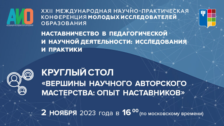 2 ноября 2023 года в рамках мероприятий XXII Международной научно-практической конференции молодых исследователей образования «Наставничество в педагогической и научной деятельности: исследования и практики» состоится Круглый стол «Вершины научного авторского мастерства: опыт наставников» для молодых исследователей из различных областей общественных наук. Круглый стол объединит опытных наставников, успешно зарекомендовавших себя в своей области, и молодых ученых, стремящихся расширить свои знания и компетенции в академическом письме. На нем участники обсудят актуальные темы и проблемы, связанные с исследованиями в области образования, а также получат ценные советы и рекомендации от признанных экспертов как успешно довести результаты своих исследований до научного сообщества. Основная цель круглого стола – содействие профессиональному развитию молодых ученых и создании благоприятной атмосферы для обмена опытом. Участники получат возможность укрепить связи со специалистами, найдя потенци