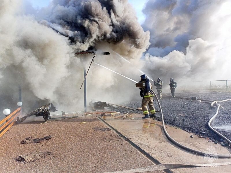 В Оренбурге на территории СНТ «Сатурн» утром 11 октября произошёл крупный пожар. Горело административное здание термального комплекса «Облепиха». Возгорание возникло сегодня утром. Очаг находился в одноэтажном здании термального комплекса. Горела кровля, сообщили в региональном ГУ МЧС. Пожар удалось локализовать в 11:34. На месте работают 7 единиц пожарной техники и 28 человек личного состава, также служба пожаротушения и начальник управления организации пожаротушения и проведения аварийно-спасательных работ Алексей Ефигин. На данный момент происходит проливка конструкций здания. Работы на месте возгорания продолжаются. Фото: ГУ МЧС по Оренбургской области