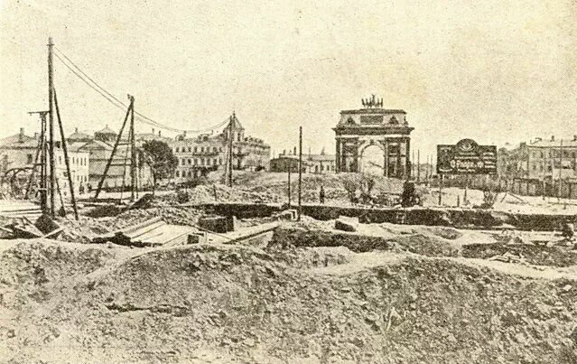 - Первая Московская Триумфальная арка появилась на Белорусском вокзале: сначала она была деревянной, затем стала каменной. Арка простояла на площади Тверской Заставы чуть более века, затем была снесена, снова реконструирована через несколько лет и возведена уже на въездной площади Кутузовского проспекта.