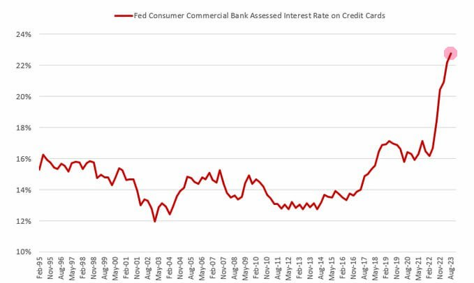 ©️ Средняя процентная ставка по кредитным картам сейчас приближается к 23% = исторический рекорд — данные ФРС