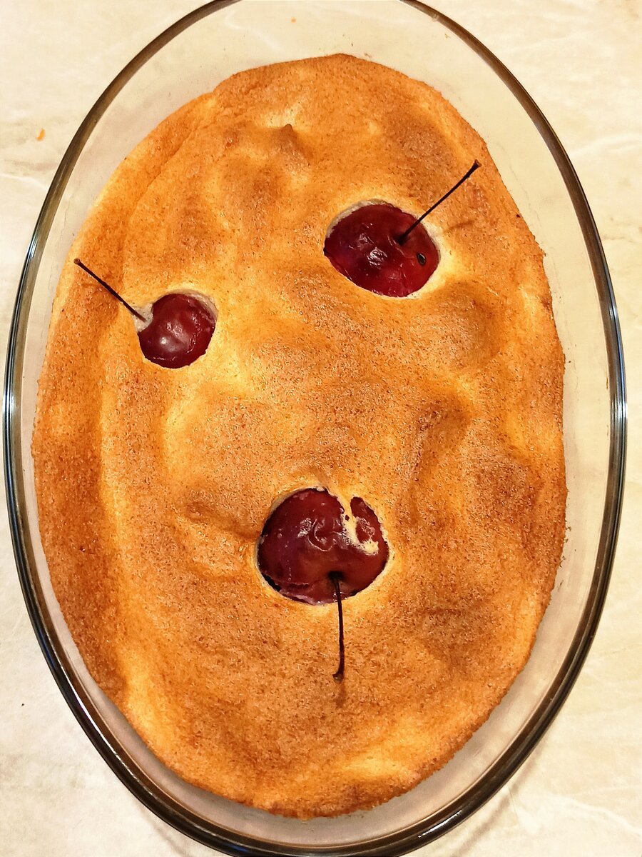 Суфле - воздушный пирог, основой его являются взбитые белки. Наиболее любимы сладкие варианты суфле. Предлагаю попробовать прекрасную замену манной каши - манное суфле! Буду готовить с маленькими яблочками, но подойдут любые фрукты- ягоды. Рецепт: 2 яйца 250 мл молока 60 г сахара 35 г манной крупы 50 г изюма 2 ст. ложки сливочного масла соль и несколько капель лимонного сока Приступим: Вскипятим молоко, уменьшив огонь добавим 30 гр сахара, манную крупу и изюм. Варим помешивая примерно 3 минуты до загустения массы. Добавим 1 ложки сливочного масла и перельëм в высокую ëмкость остывать. Отделим желтки от белков. В чистой посуде взобьëм, белки со ставшимся сахаром до устойчивых пиков, добавим примерно 1/2 чайной ложки лимонного сока и ещё раз взобьëм. Желтки добавим в манную смесь и перемешаем. Далее будем аккуратно вводить взбитые белки, осторожно перемешивая лопаткой. Должна получиться воздушная смесь. Смазываем маслом огнеупорную посуду и перекладываем приготовленную смесь н