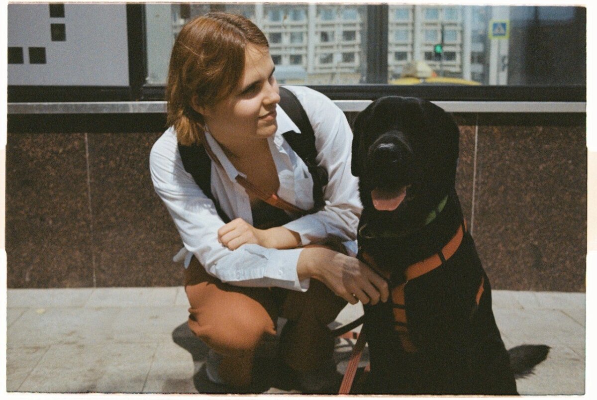 Как я уже сказала, я могу передвигаться по городу сама, поэтому долго сомневалась, так ли мне нужна собака-проводник. Однако решила, что она мне не помешает, и встала в очередь. Через полгода ожидания я получила собаку, сдала экзамен и уже сейчас могу сказать, что она мне очень помогает, ходить с ней легче. Мой пёс Харли защищает от столкновений с пешеходами, помогает обходить препятствия, которые я могу не заметить, предупреждает, если на нас едет велосипедист или человек на самокате. Благодаря собаке я чувствую безопасность, могу меньше напрягаться и трачу на дорогу меньше сил, в том числе и зрительных.