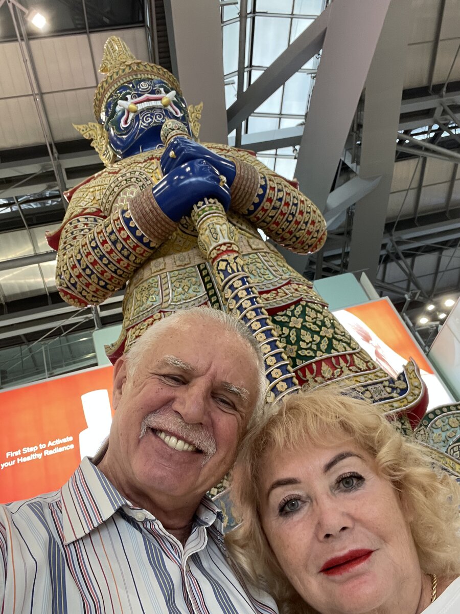 А в пятницу днем были в Бангкоке, хотя были в полете 21 час.