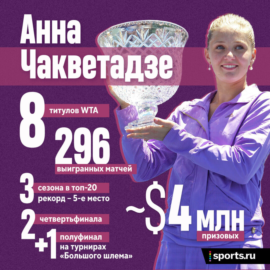 Анна Чакветадзе профессионально играла в теннис почти 10 лет, побеждала Серену Уильямс, брала титулы на разных покрытиях и доходила до второй недели всех турниров «Большого шлема».