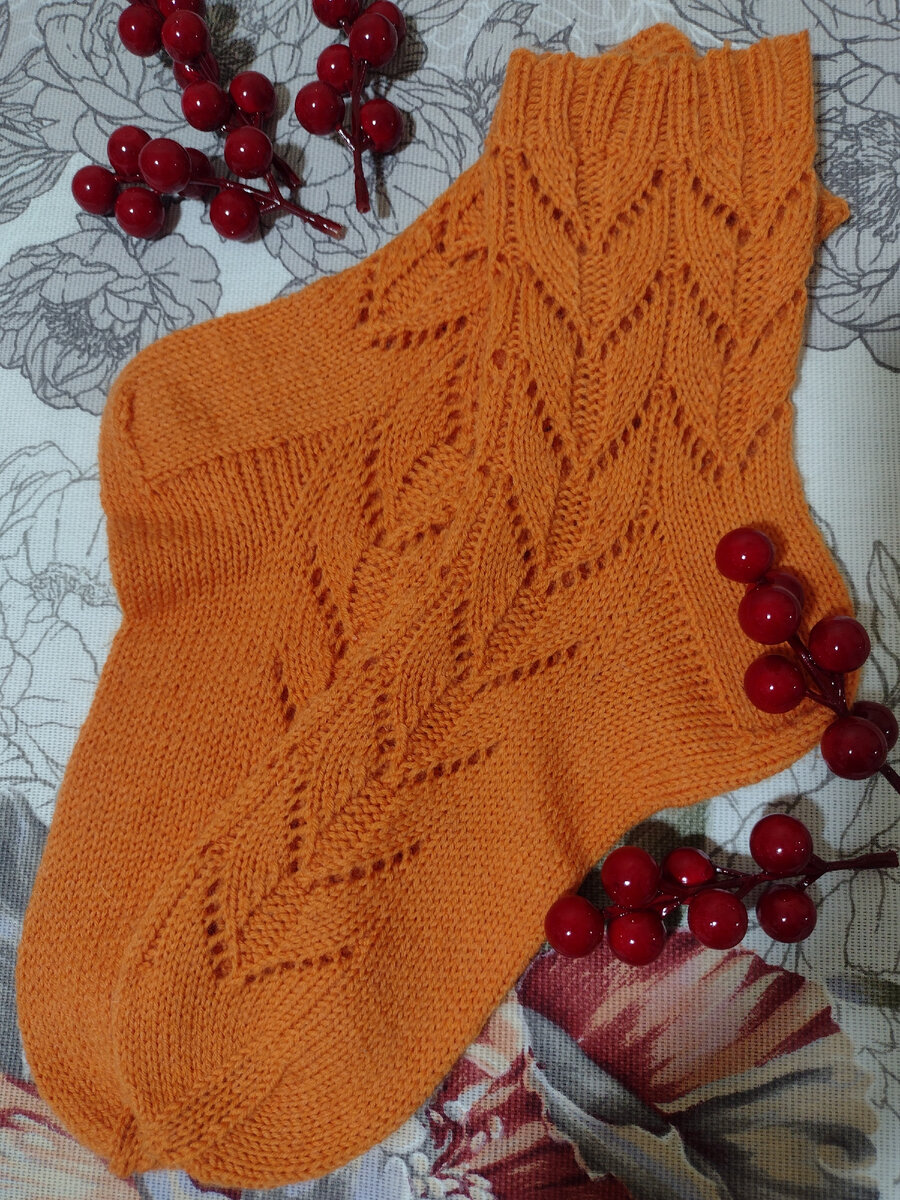 Всех приветствую, в прошлом месяце в отчёте по СП Носочки с Таней 2023 показывала ажурные носочки оранжевого цвета, многие спрашивали схему. Хотела выложить гораздо раньше, но что-то в последнее время совершенно ничего не успеваю. Как говорится, лучше поздно, чем никогда😀. Рисунок не сложный, вяжется достаточно быстро. Пряжу использовала Alize Artisan, спицы 2,5. Вязала на 60 петлях. Рапорт узора 15 петель, первая и последняя петли изнаночные. Если получается широковато, можно эти петли убрать. Рисунок на 12 рядов. До пятки рисунок у меня идёт по всему носку, после пятки по верхней части. Вяжите с удовольствием. Если что-то будет непонятно, пишите.