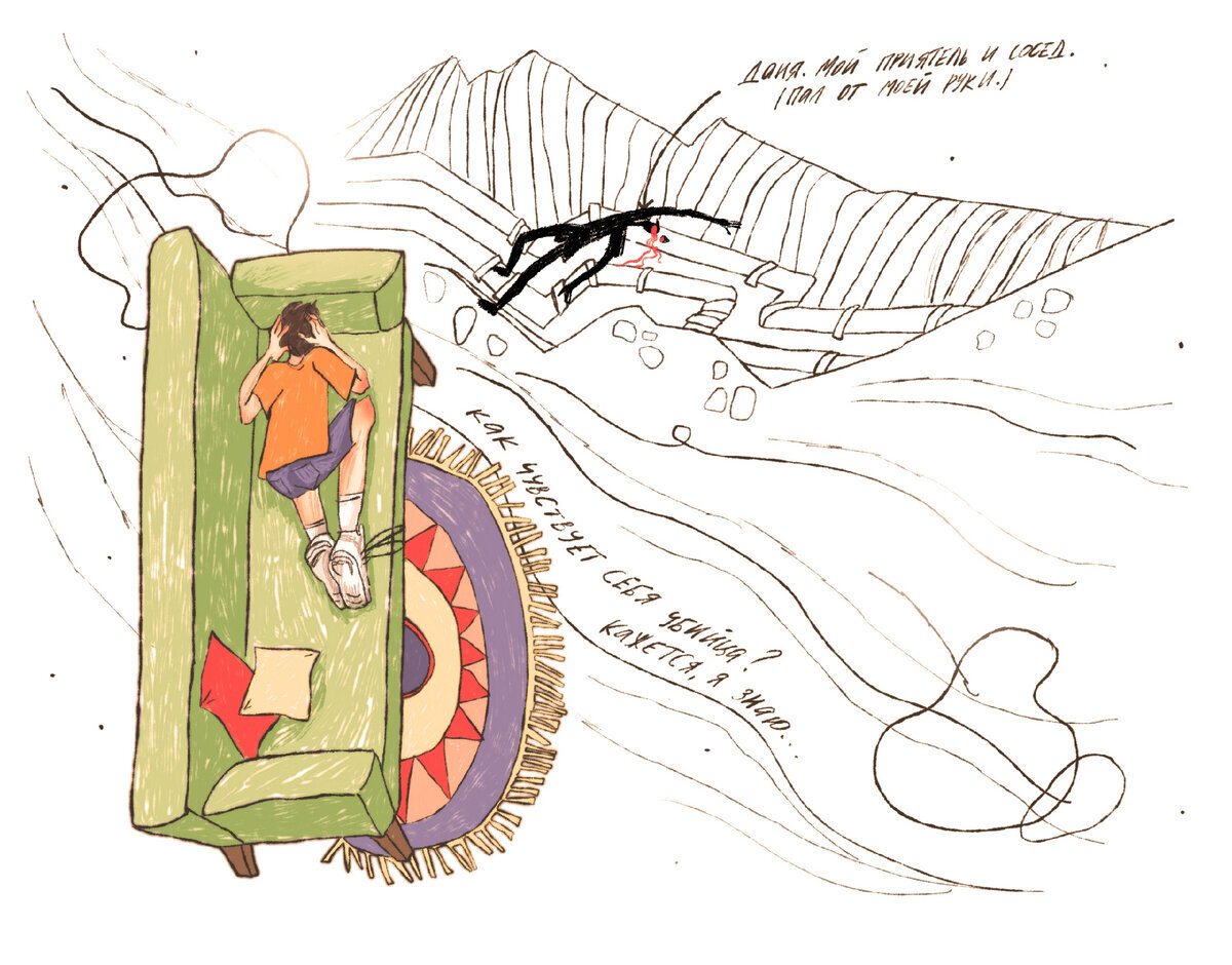 Знаете ли вы, каково это — убить человека? Я знаю, потому что однажды уже убил. Ну то есть как убил... не совсем, конечно. Но почти целый час — а это очень долго! — этот человек для меня был мёртв. И пал он от моей руки —от левой, потому что я левша. Я гостил у бабушки на даче, в дачном поселке. Мне было, кажется, лет десять, а жертву звали Даня. Он был мой приятель и сосед. Мы с Даней носились по улицам, ходили на речку, катались на тарзанке и без всякого сожаления тратили те невероятно длинные, не в пример нынешним, дни. А на соседней улице меняли трубы. Трубы проходили прямо вдоль проезжей части под землёй, поэтому одна половина улицы представляла собой длинный котлован, а вторая — горную гряду. На дне котлована лежали две толстые трубы, а по бокам и между ними стояла вода. Коммунальные службы точно знают, как должно выглядеть место для игр. Мы прыгали по трубам, взбирались на кучу земли, снова спускались с неё и так часа три. И вообще не скучно, идеально! А потом мне остро понадоби