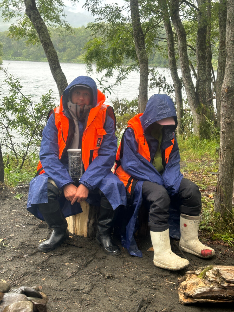 День 8 и все остальные. окончание. После тревожной ночи, не менее беспокойное утро. Ночью еще пошел дождь, под утро утих и нам надо быстренько собраться, пока он не разразился снова. Сегодня у нас завершающая часть маршрута, где нас ждут долгожданные пороги. Только успели собраться и упаковаться, как дождь не вытерпел. Отчалили, вода везде – и снизу и сверху. Сразу видно, что волшебное зелье, которое спасает нас от сырости и холода закончилось еще вчера. Гиды звонят по спутнику нашим встречающим, спрашивают, есть ли у нас пожелания, что нам привезти на антистапель. Ну всем понятно что мы заказали, дождь же надо укрощать. Мы уже все перезнакомились и подружились, и раскрыли нашим друзьям секреты, как заказать хорошую погоду. Но сейчас то нам предстоит еще несколько часов мокнуть. Идем потихоньку. Пытались рыбачить, но у нас рыба не клюет, зато пока шли, встретили прям очень много мишек, у которых рыбалка складывалась более благоприятным образом. Хорошо поснимать их не получилось, так