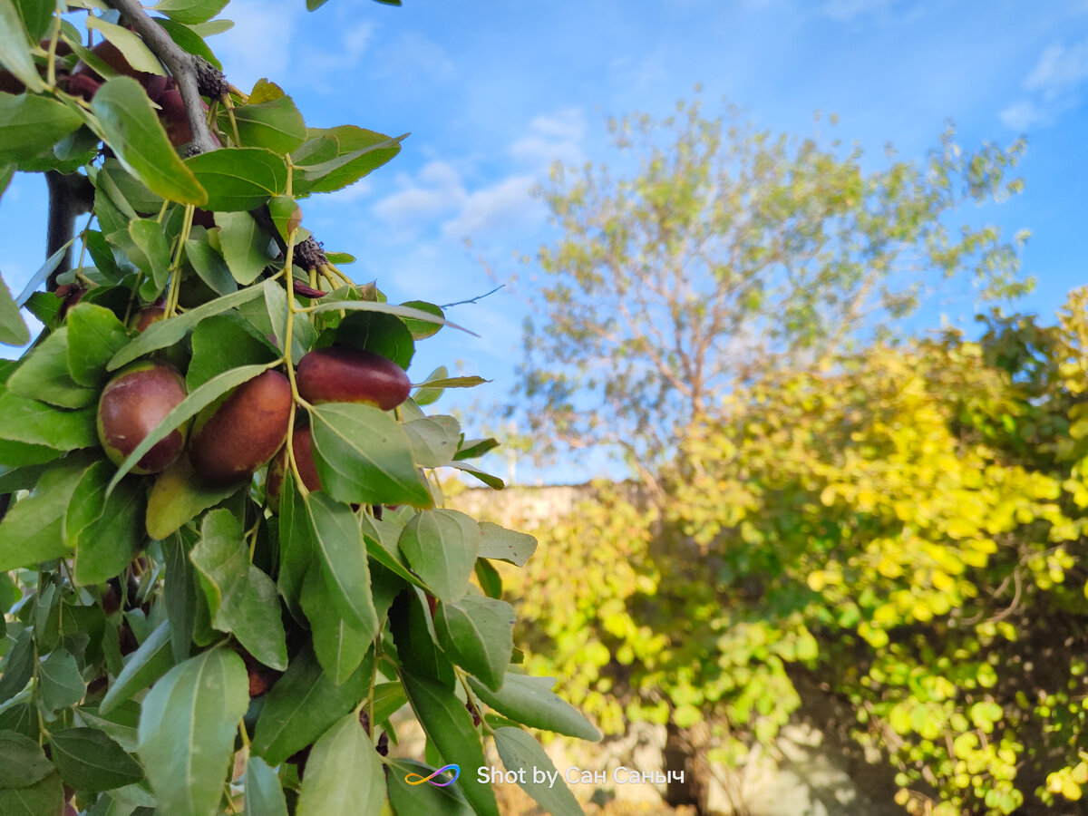 А вы знали, что у нас есть аналог финику, который даже и по внешнему виду не отличается? А может вы знаете как сделать так, чтобы некоторое время не чувствовать сладкий и горький вкусы? Обо всём этом я напишу ниже. Растёт в Крыму одно интересное деревце, с не менее интересным названием зизифус. На сегодняшний день плоды зизифуса, который растёт у нас, полностью созрели и готовы ко всему. В прошлом году мы не смогли оценить его в полном объёме, потому что когда он поспел, нам пора было готовиться к отъезду и было не до него толком. Но вкус его мы оценили, нам он понравился, немного необычный. Сразу подумали, что из него должно интересное варенье получиться, но один товарищ нам сказал, что варенье из него не варят (а вот и варят, как потом выяснилось). Так как в этом году нам торопиться не куда и опять пришла пора зизифуса, то мы в этот раз подошли к делу более ответственно. Выяснилось, что оказывается это полезнейшее дерево. Про его многочисленные полезные свойства можно написать мн