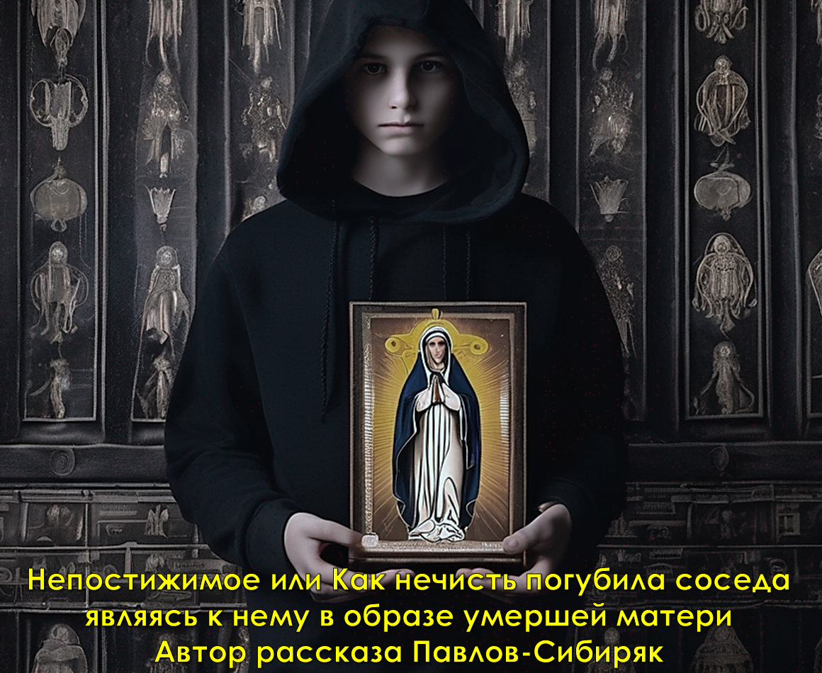 В общем время шло, нечистый дух в обличии покойницы приходил каждую ночь, а человек истощался прямо на глазах. Я очень хотел помочь соседу, но не знал, как это сделать. Долго размышлял, мы тогда не знали, как можно вызвать батюшку, чтобы освятить – жилье. И вот однажды у меня возник план: принести из дома икону, спрятаться в комнате соседа, и пока он спит, дожидаться эту нечисть. А когда бес появится оградиться от него иконой и молитвами призвать в помощь Бога.