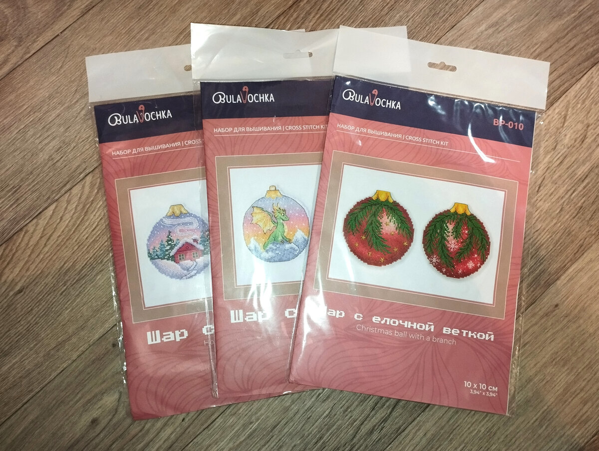 Всем большой вышивальный привет! Я известный любитель пластика и вот, на всем известном маркетплейсе, случайно в рекомендациях мне попался новый производитель. Зовется производитель Bulavochka, находится в г. Балашиха. Даже сайт их в интернете я нашла. Конечно мой взгляд сразу за него зацепился, моя любимая новогодняя тематика, да еще и на пластике - как мимо пройти? И заказала я целых три набора. Конечно же сразу один набор я вскрыла - интересно же посмотреть, что там внутри? Это набор "Шар с елочной веткой". Давайте посмотрим вместе содержимое. Нитки - Гамма, яркого цвета метровой длины. Кроме ниток в этом шарике еще вложены: один цвет прозрачного бисера и золотые звездочки-пайетки. Схема цветная, крупная, мне такие нравятся. Еще в наборе кусок белого непрозрачного пластика и игла. Размер - 10х10 см. Цена демократичная - один набор стоит от 360 до 550 рублей. Что меня слегка смутило? Органайзер. Точнее - надпись на нем. А надпись на нем - МП Студия. Вот этот момент я не поняла -