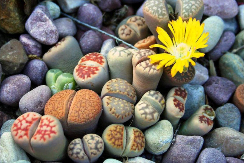 Литопсы — это уникальные растения, также известные как “живые камни”, из-за их каменной внешности.