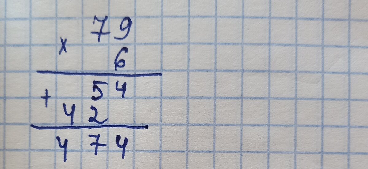 Приветствую Вас! Существует множество лайфхаков, которые используются для быстрых подсчетов в арифметике. И, именно с нее начинается математическая жизнь наших детей. Школьные препода не особенно утруждают себя россказнями по данной тематике. То ли им не хочется, то ли сами они не владеют такой информацией, не известно. Но факт остается фактом: многие дети очень плохо умеют считать, а к старшим классам и вовсе забывают вычисление в столбик. Покажу как проще умножать в столбик, без операции "в уме". Этим разгружается мозг и не приходится делать несколько действий одновременно. Допустим, требуется умножить 79 на 6. Вот как мы поступим: Здесь порядок умножения тот же, а именно, с конца. 6 умножаем на 9, получаем 54 и так ее и записываем. Затем, 6 умножаем на 7 и записываем 42, съезжая на одну цифру влево, затем складываем. Данный метод намного проще, быстрее и ведет к наименьшим потерям по части ошибок. Давайте возьмем более длинное число. Например, 5419376 и умножим его на 4: Если при ум