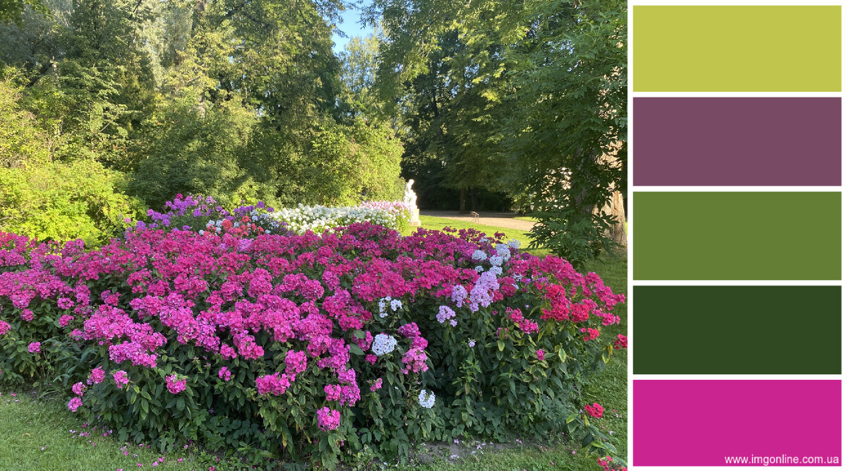 Не знаете, как сочетать цвета, например, в одежде или в интерьере, но при этом не хотите разбираться с цветовой гармонией, кругом Иттена и прочими приспособлениями? Красивые и гармоничные цветовые сочетания может подсказать природа) Да, вы не ошибетесь, если оглянетесь вокруг и выберете для себя источник вдохновения в парке, в лесу или на ближайшей клумбе) Я разложила несколько своих фото, сделанных этим летом, на цветовые палитры и получились довольно интересные и гармоничные сочетания цветов! Можно использовать в иллюстрации, например, или в гардеробе) Клумба в Павловском парке: Розы в парке «Диво-остров» По реке на катамаране в одном небольшом городе: Клумба около ГУМа, Москва Тут пяти цветов мне показалось мало и я решила выбрать 10: Курочки - это тоже природа) Посмотрите, какая интересная получилась палитра! Петергоф что-то подкачал. Он же не такой серо-болотный. Наверное, потому что в тени… Тут многовато зеленых вышло. Я бы выделила бледно-розовый еще. Можно и самосто