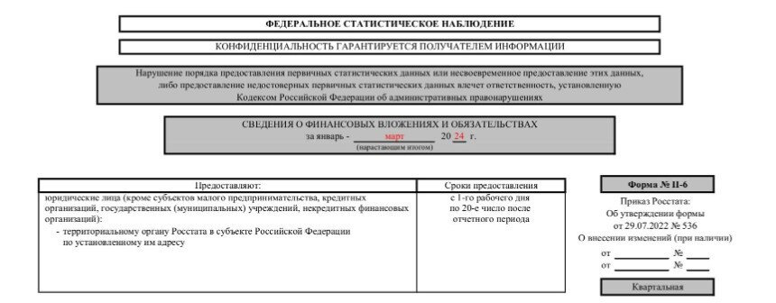 Каковы сроки сдачи формы П-6 в Росстат в 2024 году
