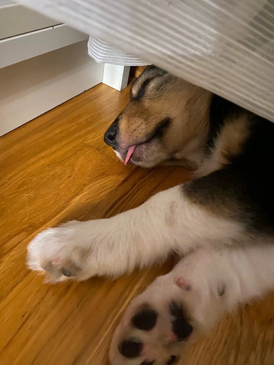 Сегодня оставалась одна, без клетки. Валялась то тут, то там и никаких грызь, кусь (спасибо что есть камера). Ребёнок спал сладким сном 🤗