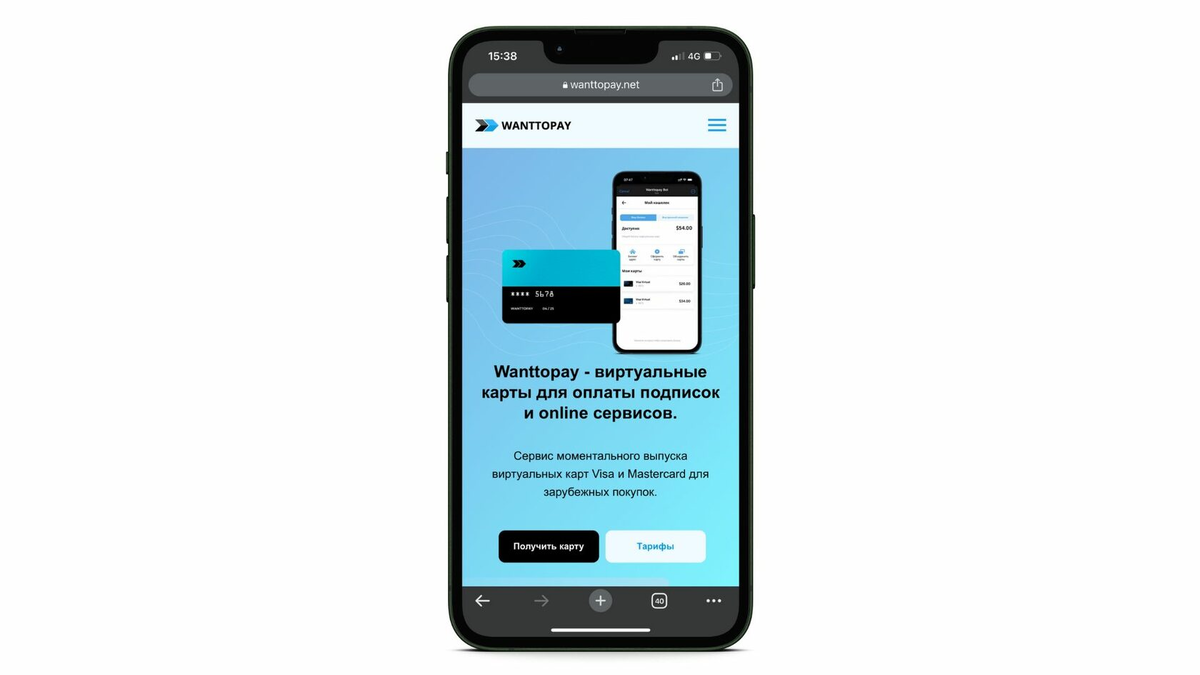 1. Создаём зарубежную карту оплаты через сервис Wanttopay.