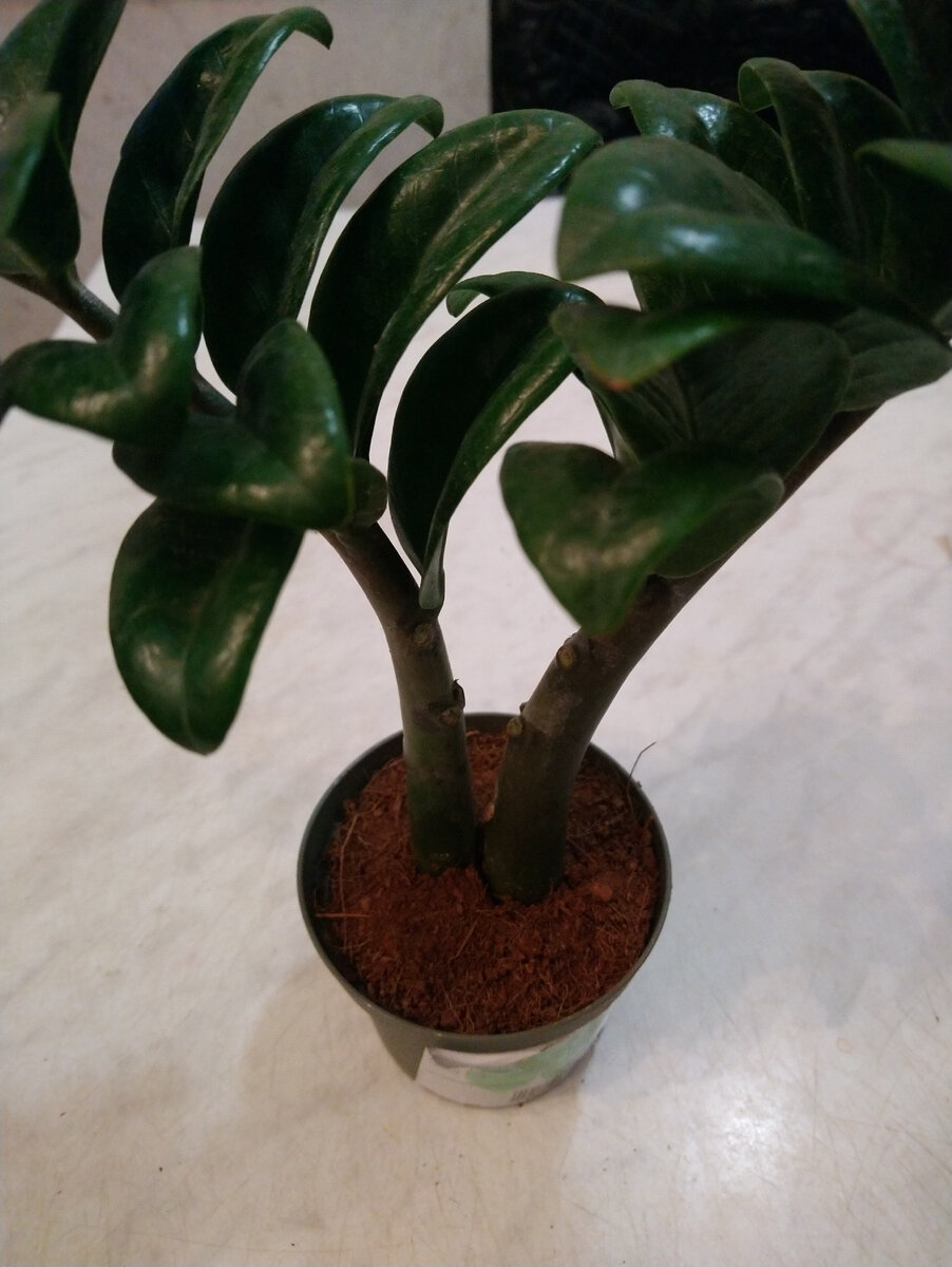 Раскрою секрет производителя, пересажу купленный Зензи и покажу как размножаю Замиокулькас листом на примере одного растения. Покупая в магазине цветок, мы надеемся купить здоровое комнатное растение. Чтобы дома оно подало признаки жизни, выпуская новые листья. И если этого долго не происходит начинаем искать причины. Я уже писала, что купила Замиокулькас для размножения. Часть нижних листовых пластин срезала и поставила на укоренение . Сейчас сниму ещё несколько штук и в конце статьи покажу как укореняю их. Остальные листовые пластины решила пока не трогать. Нужно сначала пересадить Замиокулькас, дождаться первого листа и только после этого срезать оставшиеся листовые пластины для укоренения. Зензи растёт медленно, но и я никуда не тороплюсь. Настал день пересадки Сняла горшок, убрала грунт, обнажив один из секретов производителя. Как производитель готовит Замиокулькас к продаже? Срезает листья Зензи, сажает в горшки 0,2л в лёгкий воздухопроницаемый грунт, располагая листья л