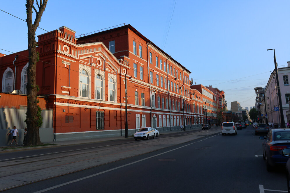 4. К зданию заводоуправления слева примыкает красивый красный жилой дом постройки 30-х годов на углу с 1-й Миусской улицей. Про Миусы, кстати, нужно будет тоже отдельный рассказ как-нибудь сделать. Там есть на что посмотреть.