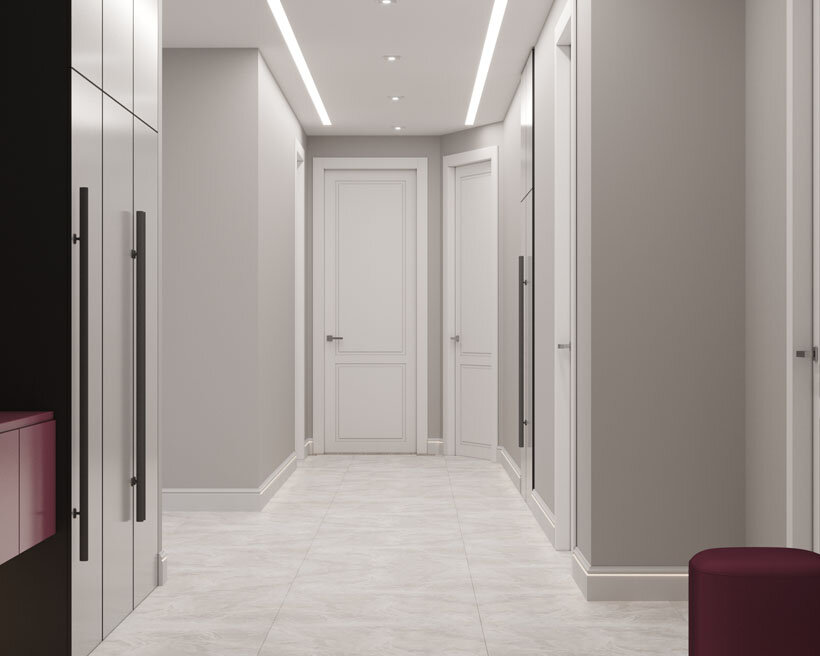 Большая и светлая прихожая с гардеробной - дизайн-проект 13,2 м²
