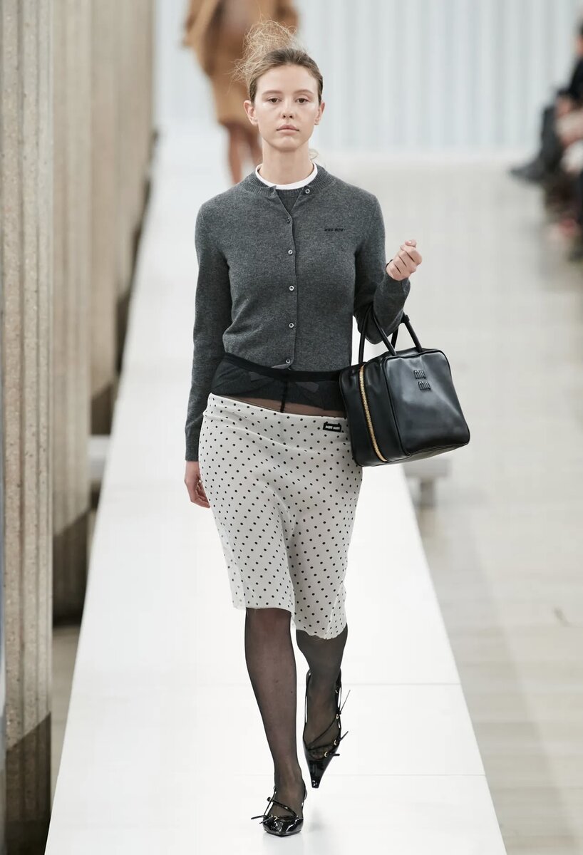 Lyst выкатил рейтинг самых модных брендов и вещей Q3 2023. Посмотрим, какие имена, формы и силуэты сегодня занимают вершину в массиве трендов. Самые модные бренды Возглавил топ брендов Miu Miu. В этом году он выстрелил на волне ностальгических трендов 2000-х. Вот пример образа модели на показе коллекции Fall 2023 Ready-to-Wear. Ну и, конечно, невероятный взлет произошел у переосмысленных старых добрых балеток. На втором месте оказался Loewe. На показе весна-лето 2023 они продемонстрировали платья и плащи с принтом-обманкой, имитирующим движение картинки, ну или ваше плохое зрение. А также одежду с пиксельным принтом И «фарфоровые» топы в виде гигантского антуриума Третье место — Prada На показе коллекции осень-зима 2023/2024 они показали объемные юбки-облака в сочетании со сдержанным, но свободным верхом и визитной карточкой бренда — остроносыми туфельками киттен хиллз с открытой пяткой. Также в 10-ку попали Bottega Veneta, Versace, Saint Laurent, Moncler, Valentino, Jacquemus и Burbe