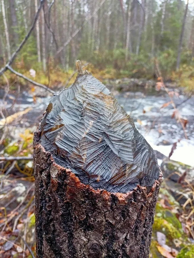 На границе Республики Карелия и Мурманской области, неподалеку от Зареченска, были найдены следы обитания бобров. Фотографией «зубастых улик» поделился глава города Полярные Зори Максим Пухов на личной странице ВКонтакте.