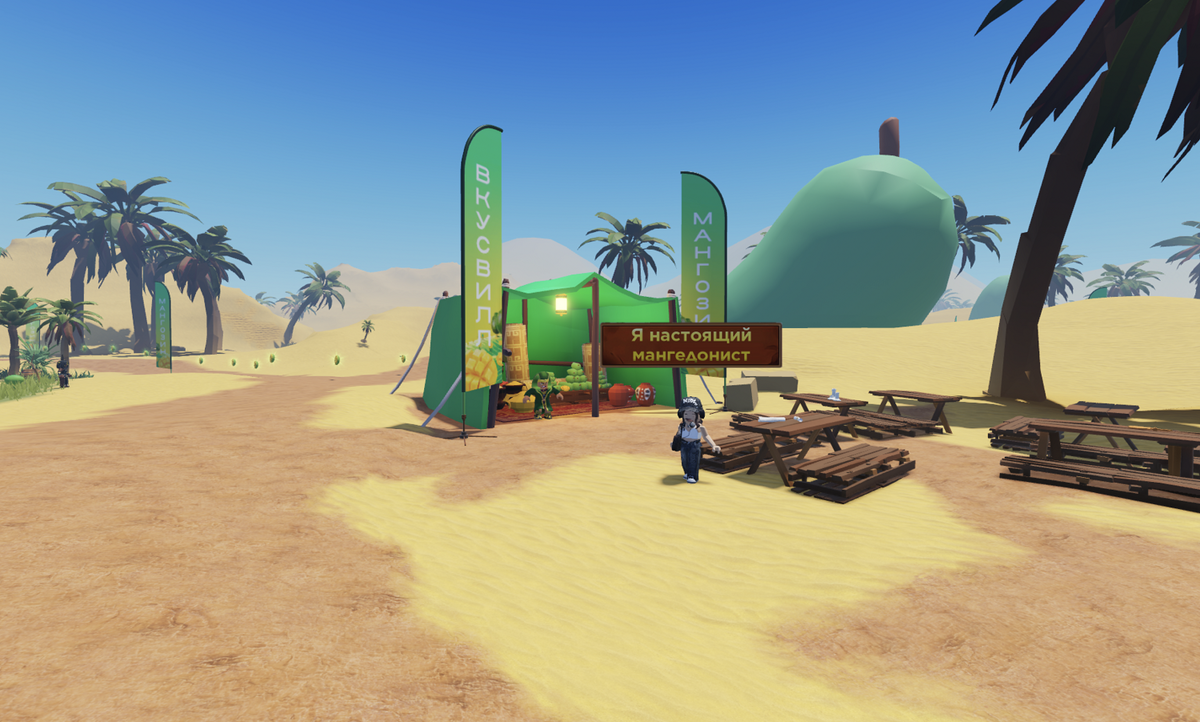 «Вкусвилл» открыл в метавселенной Roblox «Мангомир» с тремя мини-играми, квестами и приключениями. Дополнительно можно будет получить внутреннюю валюту, предметы и бонусы на покупку манго с бесплатной доставкой в магазинах «Вкусвилл». Об этом редакции Inc. сообщили в компании. Roblox — виртуальная вселенная для творчества и общения с друзьями. Игровая онлайн-платформа дает любому пользователю возможность создавать свои собственные игры или играть в уже созданные. Уже второй год «Вкусвилл» каждую осень посвещает манго, превращая даже магазины в «мангозины», буквально их переименовывая. Сейчас же они создали специальный «Мангомир» в игре. Локация в виде солнечной пустыни с деревьями манго и со своими достопримечательностями, где можно полюбоваться пирамидами и наскальной живописью, сфотографироваться с местным сфинксом, собрать урожай ценных манго с бонусами, расслабиться в оазисе и рассекать на багги по местности. Как только игрок попадает в «Мангомир», ему открывается возможность позна