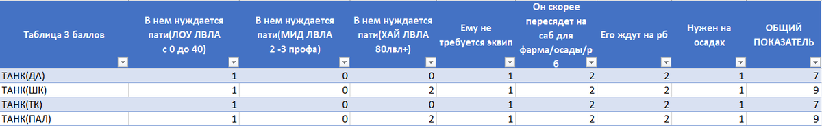 6. Столбец за РБ - классы без которых фарм боссов, превратиться в ковыряние с кучей матов и трупов.