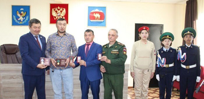 Как сообщили в районной администрации, медалями «За отвагу» награждены Эдуард Едеев, Емельян Окин и Куаныш Сабиев. Емельяну Окину также вручили удостоверение «Ветеран боевых действий», а Куаныш Сабиев удостоен медалей «За освобождение Артемовска», «За взятие Бахмута».