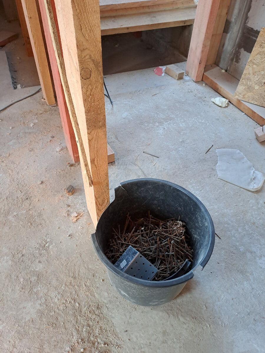 Постоянно слышу о том, что черные саморезы нельзя применять на стройке 🤣. Все забывают что на стройке оооооочень много работ связанных с построением опалубки для монолитных работ и постоянно необходимо временно крепить что то к чему то. Поэтому .... для кровли, каркасника или любого строения на ПОСТОЯННОЙ основе, мы используем гвозки или конструкционные саморезы, а вот для всего что в дальнейшем будет разбираться можно и черными побалываться. К примеру сегодня сфотал наше ведро с саморезами после разборки опалубки фундамента и представьте эти же саморезы использовались для крепления опалубки армпояса 1 го этажа, опалубки лестницы , а так же будут использованы для опалубки армпояса 2 го этажа и еще и еще и еще😄. Экономия на дом 150м2 в районе 15000 руб. Ниже фото "ведра" с саморезами и пара фото где именно эти саморезы использовались.