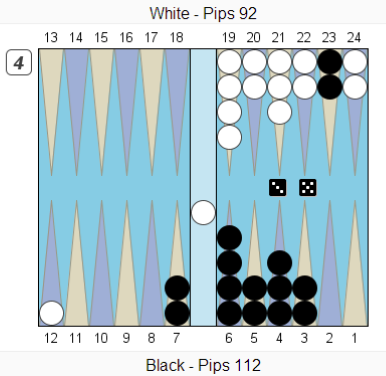 В этой позиции я сыграл бы 23/18, 6/3. Вылезать надо, а то потом можно и не вылезти. 6/3 для максимальной гибкости. Занимать 1 пункт особого смысла нет, белые не будут рады туда зарядиться.